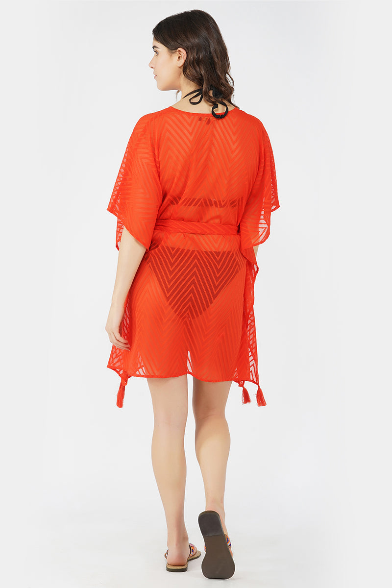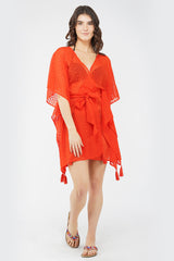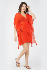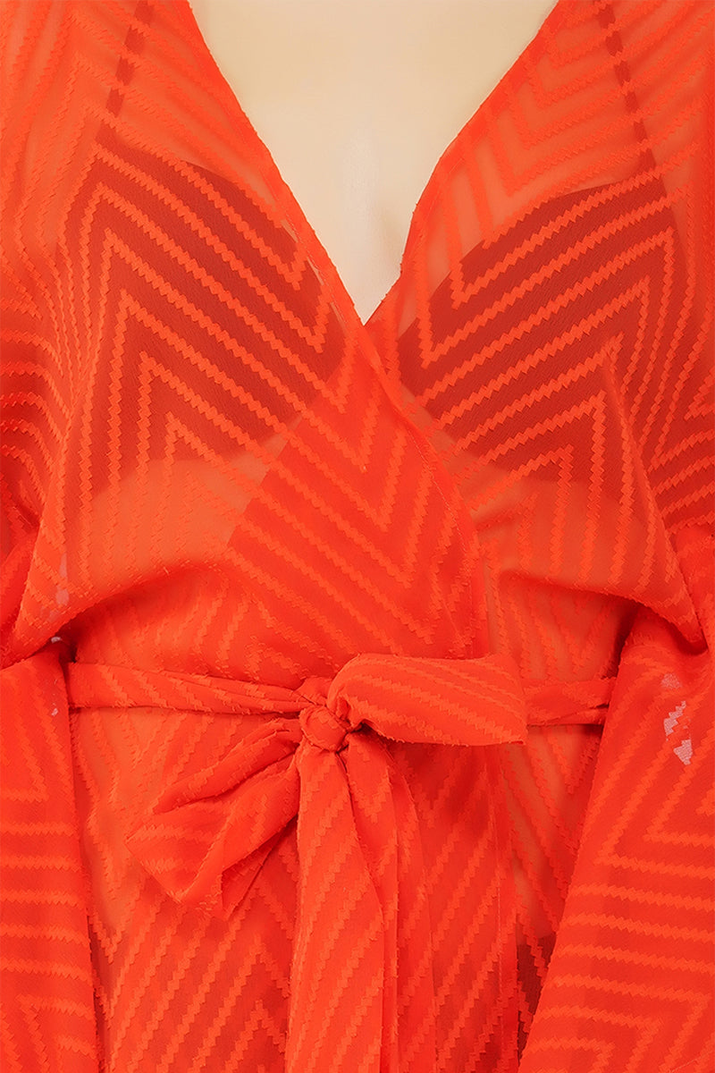 Hand-loomed fabric in the perfect shade of tomato red, the Red Carpet Ready Kimono will have you turning heads.