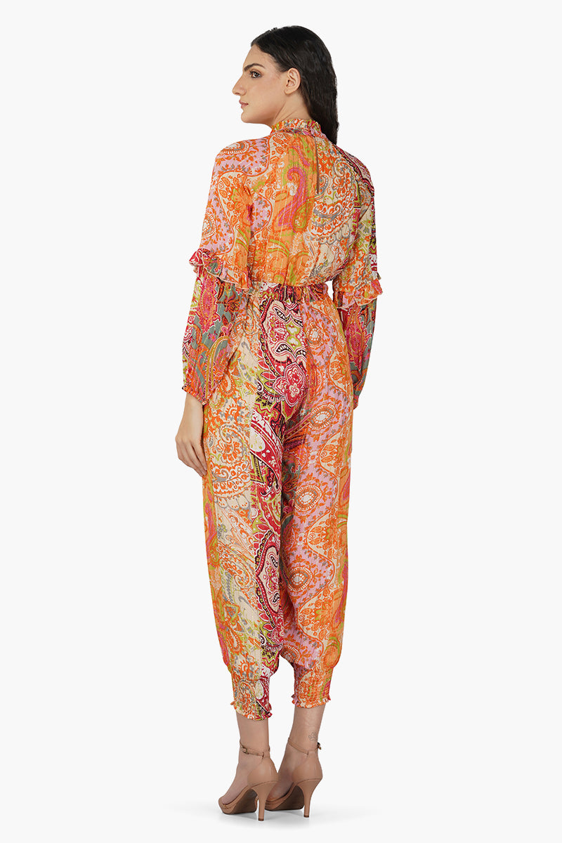 Whether you're attending a garden party, a beachside gathering, or simply want to make a fashion statement, the Multi Palm Paisley Jumpsuit will always be by your side.