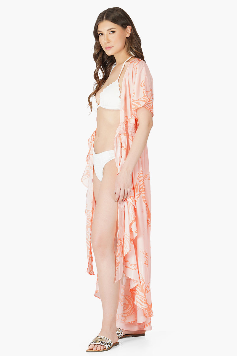 This instantly iconic stunner is crafted for the fancy who can keep it real. In cahoots with the ruffle detail trend, the modern tiger print is brought to life with a beautiful cover up.