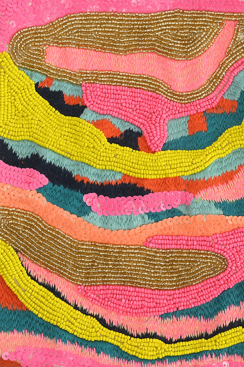 This rich stunner in a flurry of rainbow colors is a bestseller for a reason. The intricate handwork on Daphne is perfect for adding a pop of color and style to any outfit.