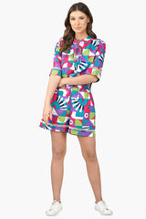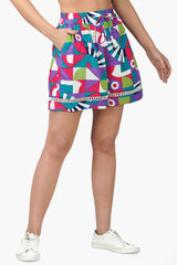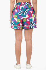 The geo toucan viscose shorts will be your new favorite go-to for hot summer days. The front band with drawstring tie and tassels provide a stylish fit and the elastic back ensures a comfortable fit. The relaxed fit of these shorts makes them perfect for a variety of different looks. And the lace insert at the hemline adds a touch of subtle femininity. Whether you're looking for a casual look or something more dressy, these shorts will be the perfect addition to your wardrobe. Pair with the matching geo toucan top for a fun timeless look.