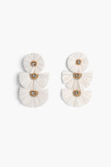 Each earring is created with a three-layer round shape, elegantly hand-made with raffia and embellished at the center for a truly eye-catching look. Whether you're looking for a statement piece to wear to a special occasion or an everyday accessory to complete any outfit, these earrings will always deliver.