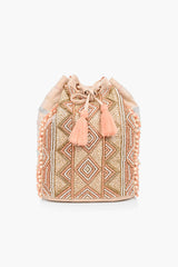 Hand beaded in shimmering shades of petal pink, gold, and rose gold, this backpack is fun, functional, and totally eye-catching. A drawstring closure adds style while adjustable straps keep you comfy and hands-free.